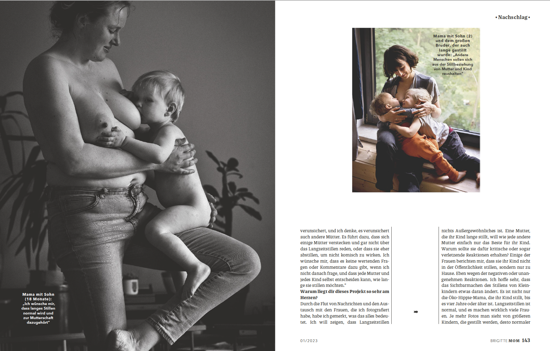 Viele Mütter stillen ihre Kinder länger als ein Jahr. Doch nur wenige zeigen sich selbstbewusst stillend mit ihrem Kleinkind in der Öffentlichkeit. In den Medien wird es kaum gezeigt oder thematisiert. Dabei empfiehlt die WHO eine Gesamtstilldauer von bis zu 24 Monaten oder darüber hinaus.*