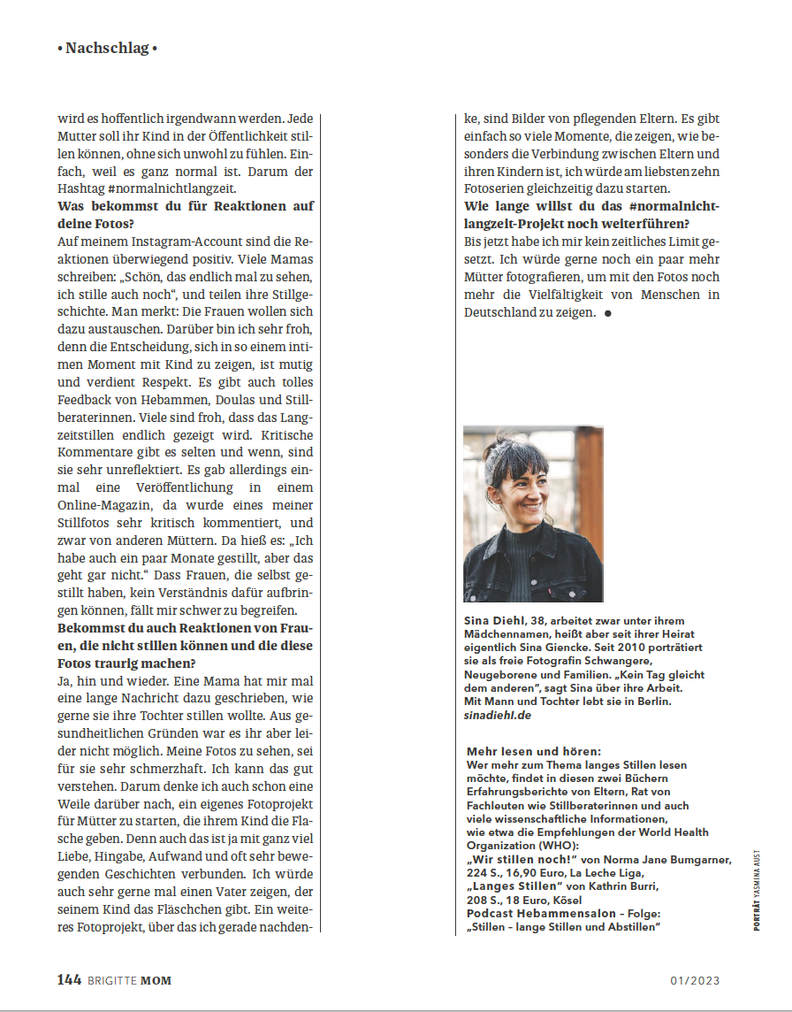 Ich möchte dem sogenannten Langzeitstillen oder auch Kleinkindstillen mehr Sichtbarkeit und dadurch mehr Akzeptanz geben. Dafür habe ich dieses Fotoprojekt gestartet. Ich habe Mütter und ihre Kleinkinder zwischen einem und vier Jahren beim Stillen fotografiert. Hierzu habe ich sie entweder Zuhause besucht, sie in einem Park getroffen oder über virtuelle Fotoshootings Zutritt zu Ihrem Zuhause ausserhalb Berlins, teils auch außerhalb Europas erhalten. Da ich selbst nicht für alle sprechen kann, habe ich die Mütter auf den Fotos zu ihrer Sicht auf das Langzeitstillen oder – wie einige von ihnen es lieber nennen – Normalzeitstillen befragt. Die ersten Antworten kannst du in meinem Instagram Feed unter #normalnichtlangzeit finden. Für den Rest – stay tuned. Die neusten Infos zu diesem Projekt erfährst du über meinen Newsletter.